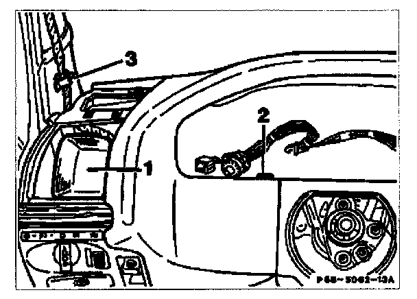 1. Remove air duct (1). Screw out screw (2) and remove clip (3).