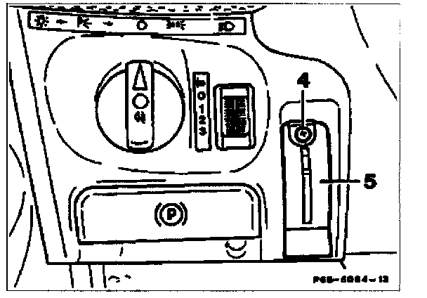 3. Remove actuating mechanism for steering wheel adjustment, for this purpose pull off knob, screw out screw (4), slide cover (5) up and remove.