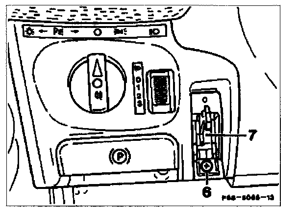 2. Disconnect plugs for rotary light switch, headlamp range control and bulb socket for rotary light switch symbol (arrows).