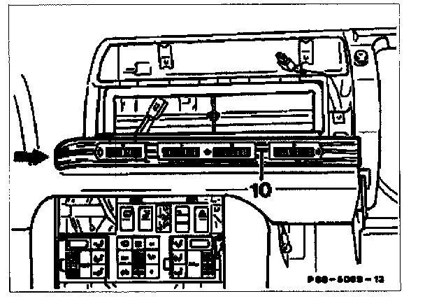 8. Remove wooden trim strip (10), for this purpose extend attachment hook in area of instrument cluster.