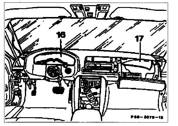 17. First insert panel on the front wall pillar on the dnver's side moving over steering column, ignition lock, air connections at top and mounting flange on center console.
