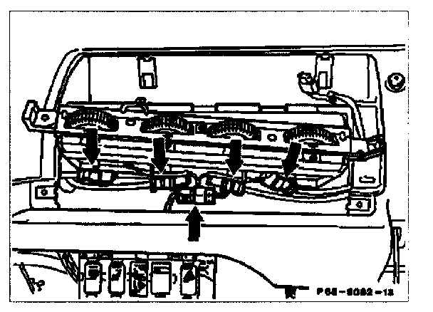 23. Install knurled switch strip. Attach control cables for heater and plugs (arrows).