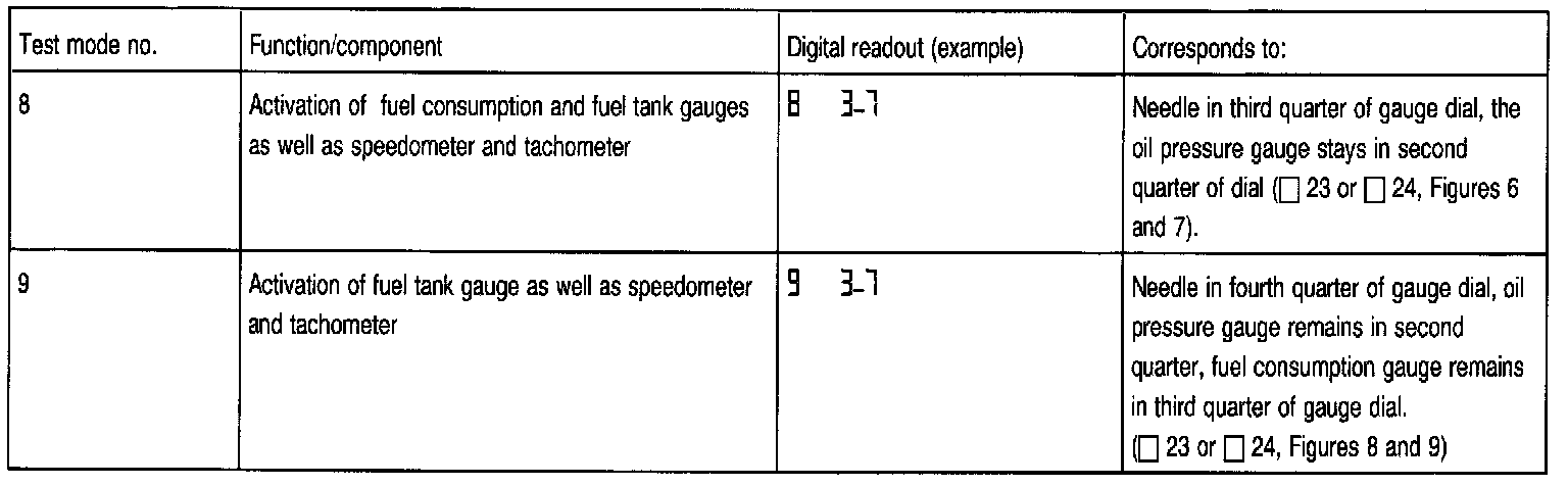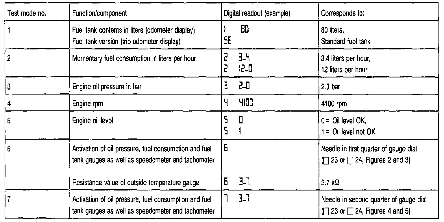 - During test mode 2 "Momentary fuel consumption in liters per hour", the consumption values are indicated by a three or four digit display:
