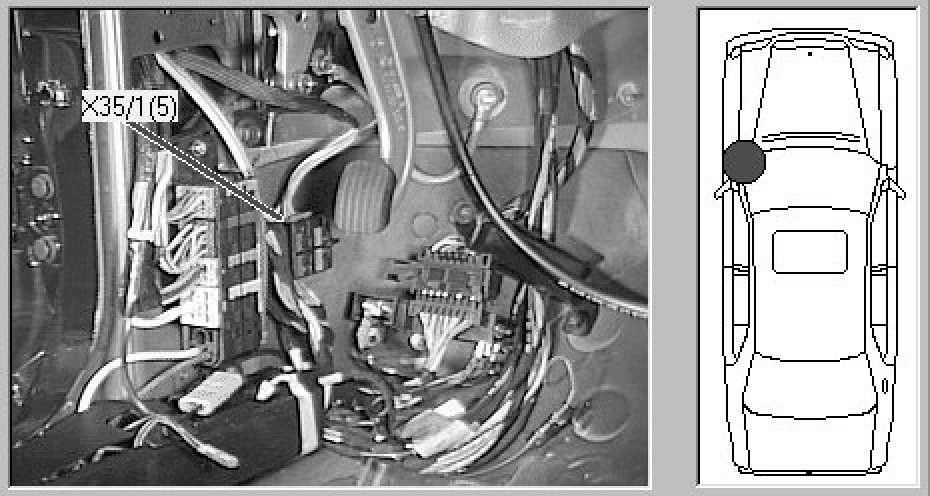 Passenger compartment, in Driver's footwell near doorjamb, not part of the rest of X35/1.