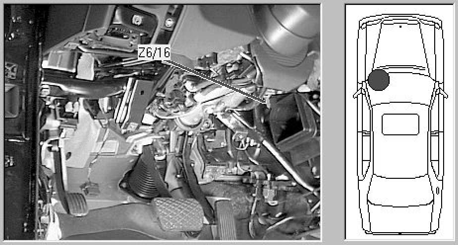 Passenger compartment, right side of Driver's footwell, left flank of center console.