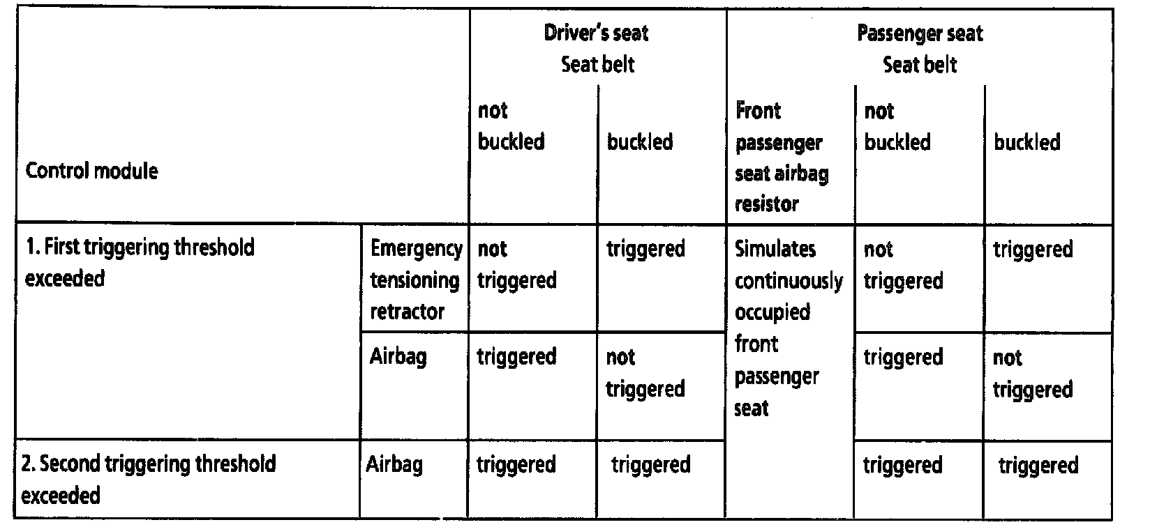 - Front passenger seat not occupied