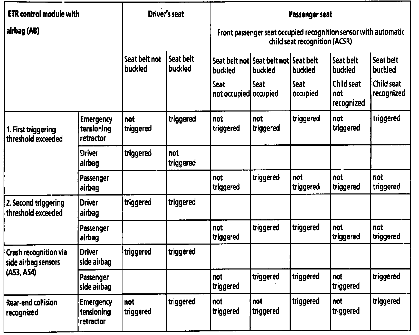 * ACSR = Automatic Child Seat Recognition