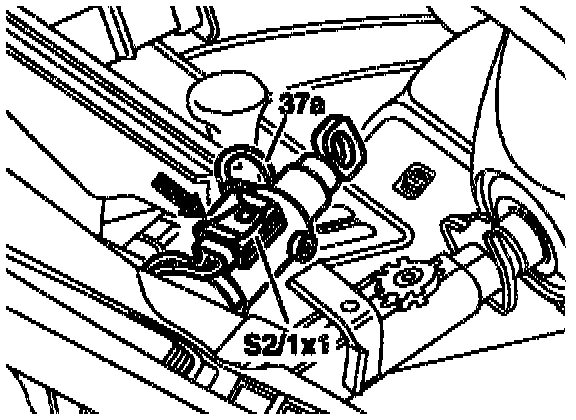 6. Press in locking catch (36f) of connector (S21x1) and pull slide towards the lock cylinder.