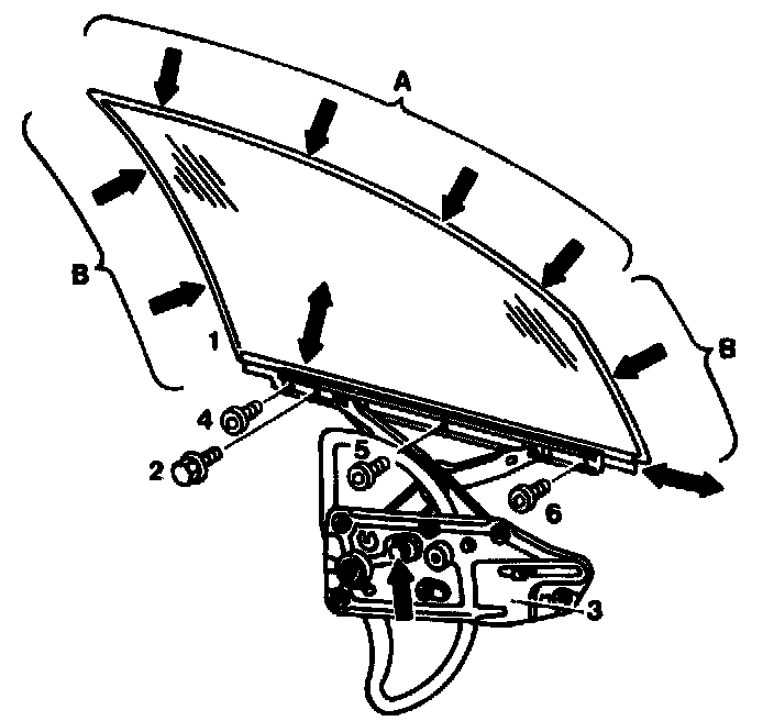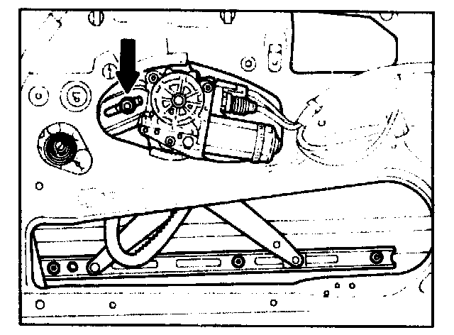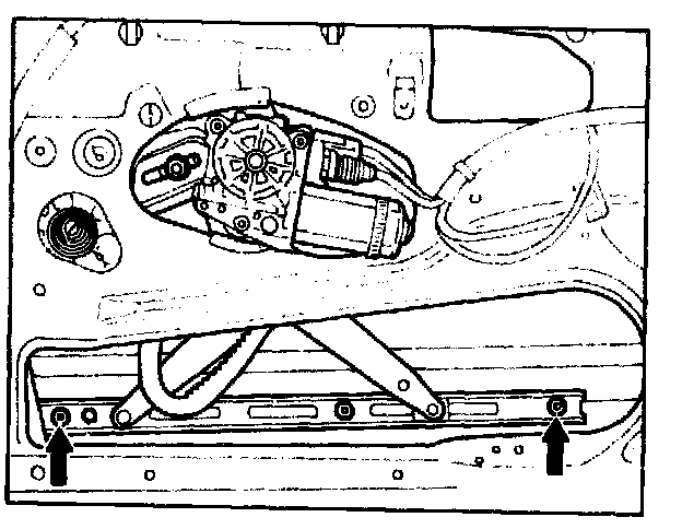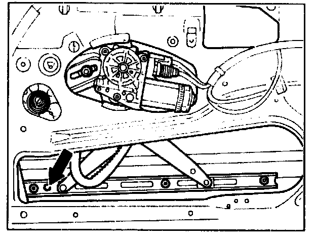 6 Adjust by loosening screw (arrow) on window lift bar and moving window toward front or rear.