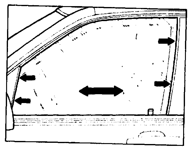 7 Check parallel position of window at rear vertical window guide channel.
