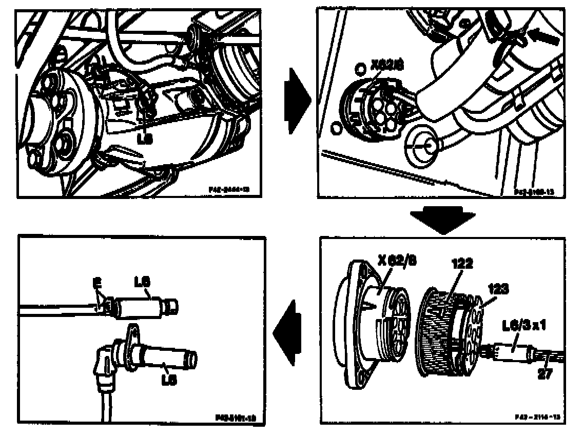 - Remove rear axle wheel speed sensor (L6) vertically out of rear axle casing.
