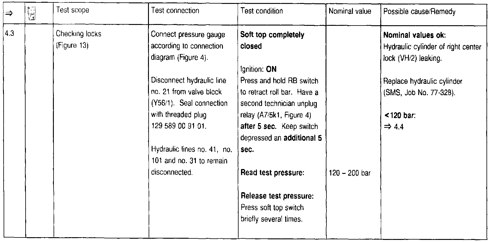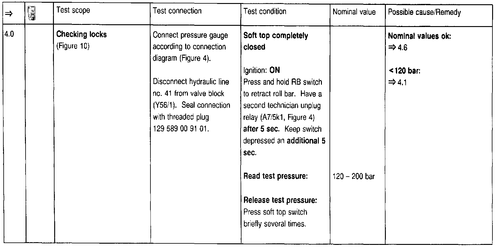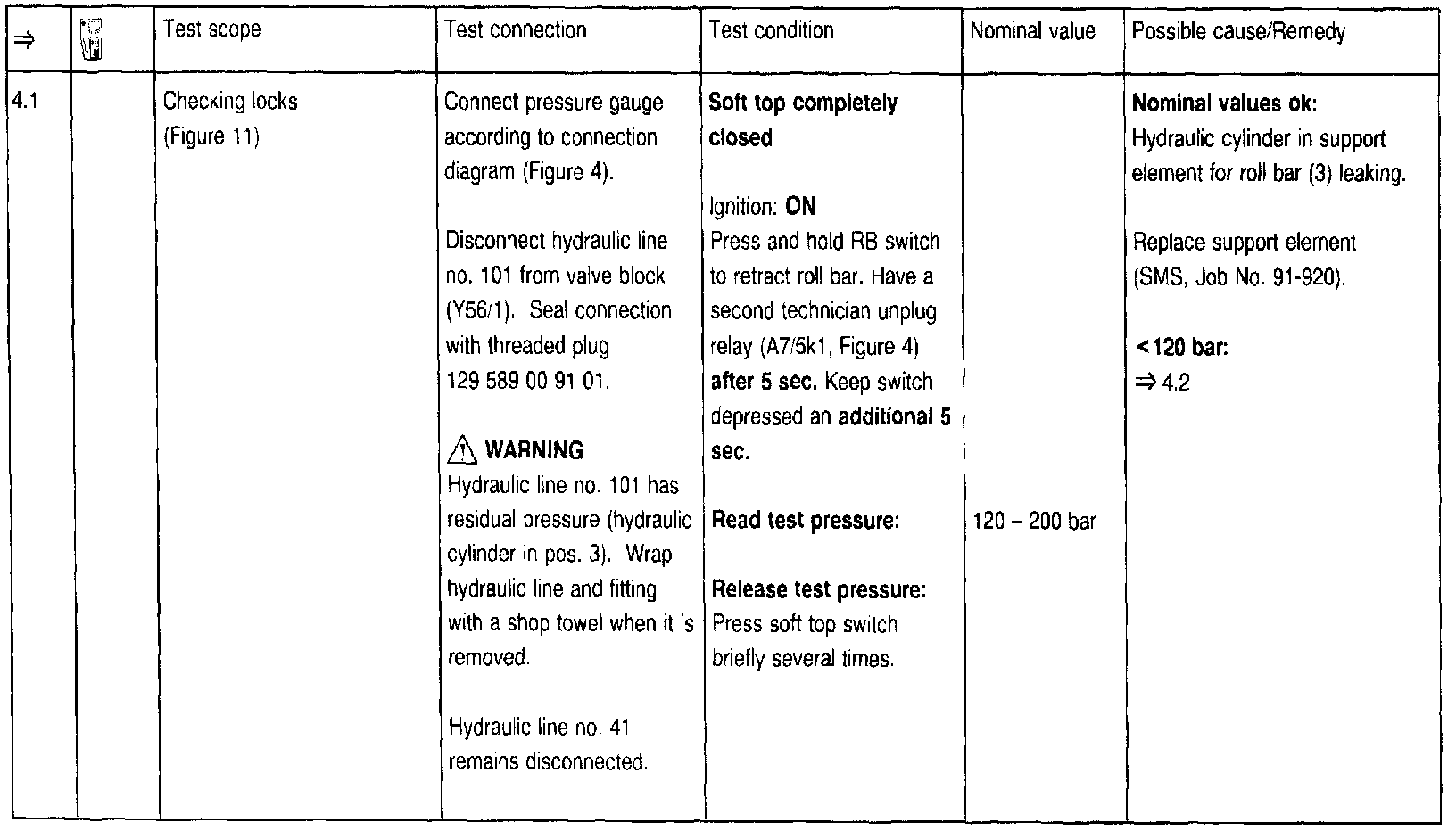 D. If hydraulic lines need to be disconnected from the valve blocks during pressure tests, the appropriate soft top position (end position of the hydraulic cylinder) must first be ensured.