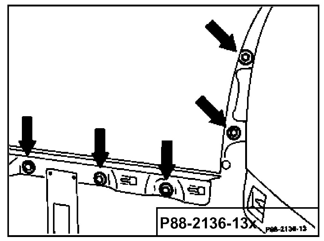 3 Screw out screws (arrows) on front pillar and on main frame member.