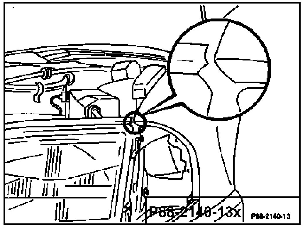 10 After installing fender preserve hollow space above inner fender with hollow cavity sealing agent through opening (arrow) in turn signal cutout. Mask openings on front fender into engine compartment during this operation.