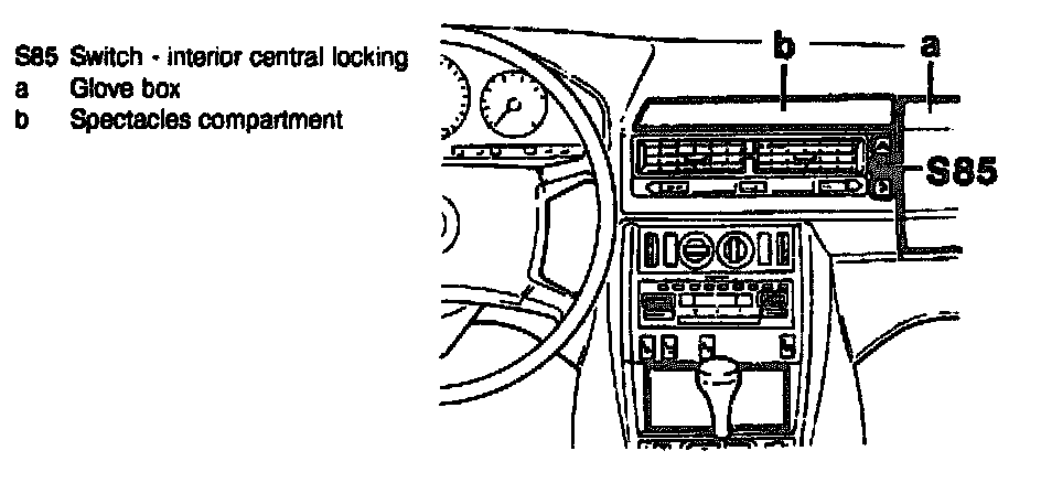 The glove box, spectacles compartment, center stowage compartment, cassette compartment, two compartments in the rear, and the lid of the door storage pockets are locked and unlocked using the central locking.