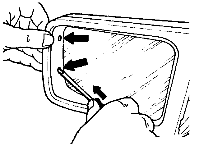 9 Unclip frame with screwdriver and press off of mirror housing.