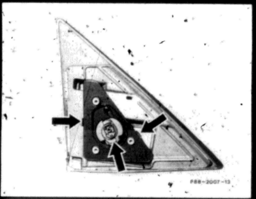 17 Press holding plate off of mirror triangle and screw out plug.
