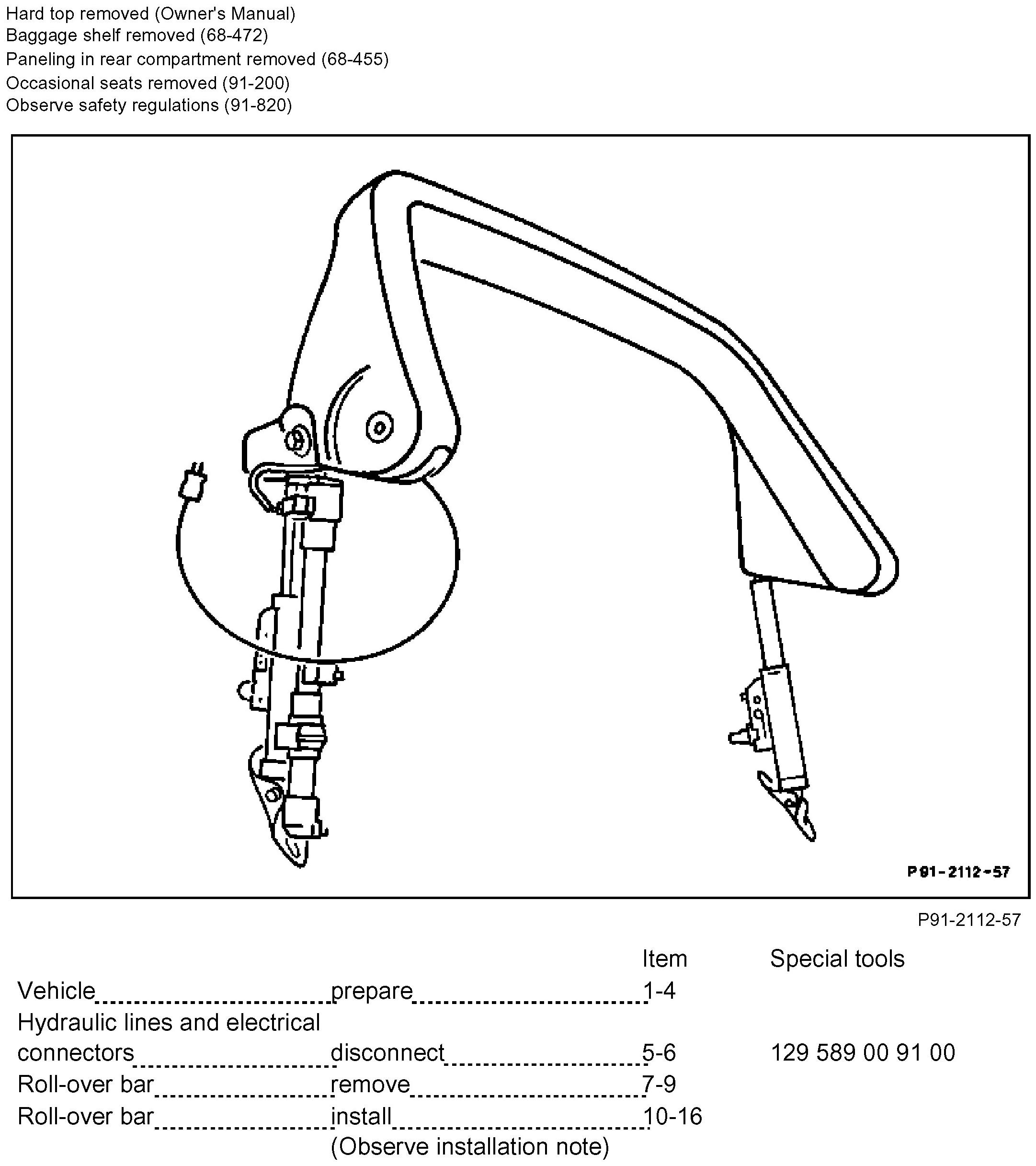 Attention: Check system for proper function after repair work on roll-over bar (91-830).