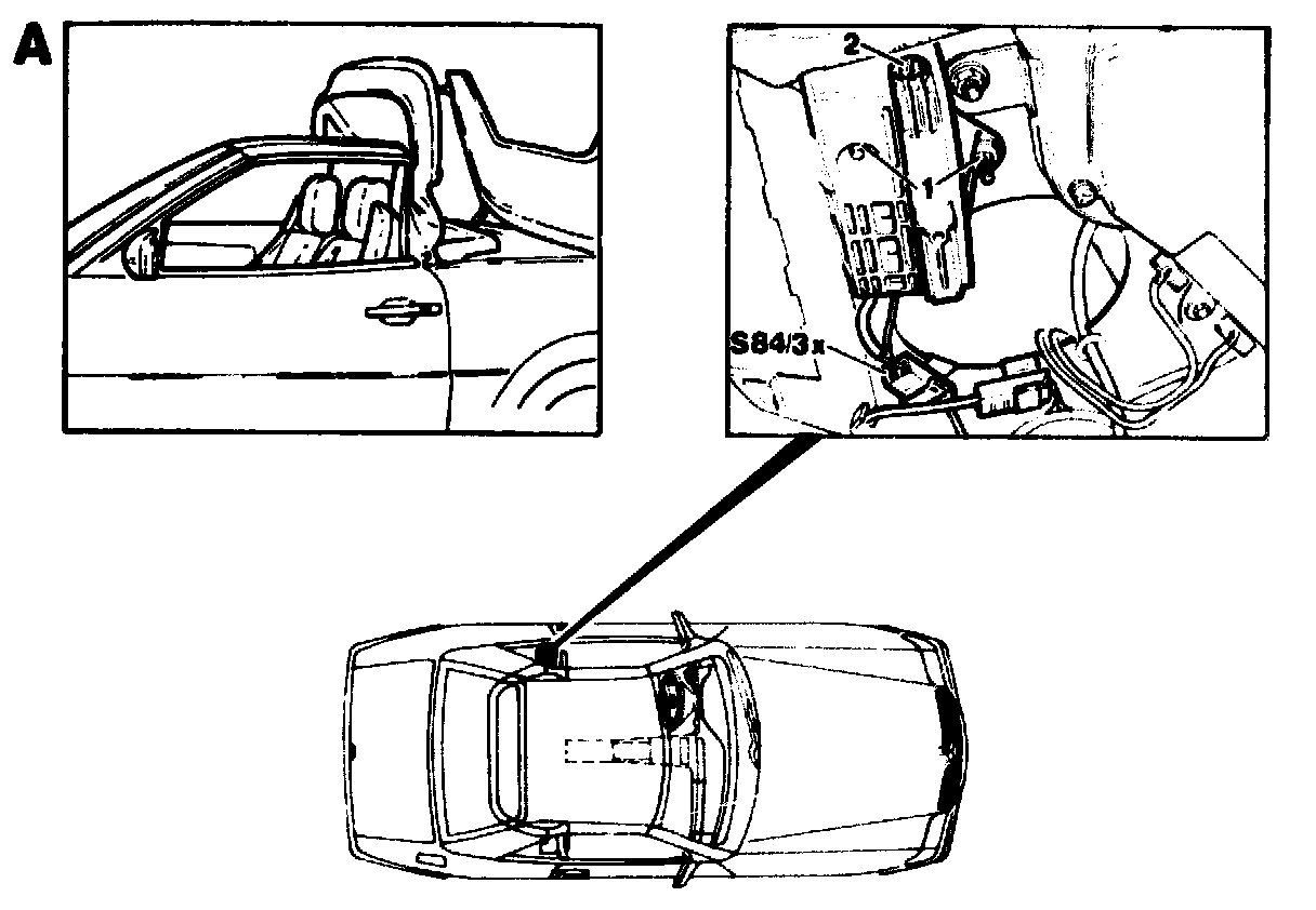 Limit switch (S84/3) should actuate when the upper part (seal) of the top is level with the trunk lid in the retracted state.