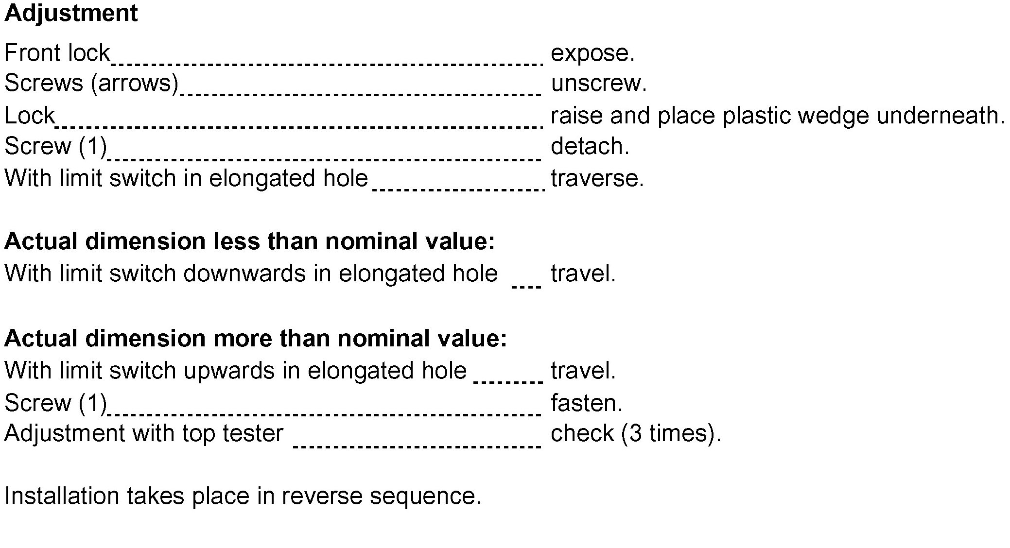 77-443 Removal, installation and adjustment of limit switch - top locked at front (only possible with top tester produced by Bara- Electronic)
