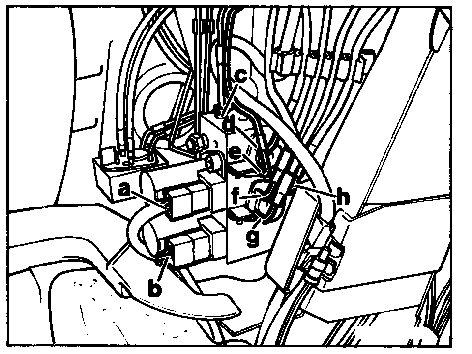Hydraulic lines (c, d, e, f, g, h) remove on valve block