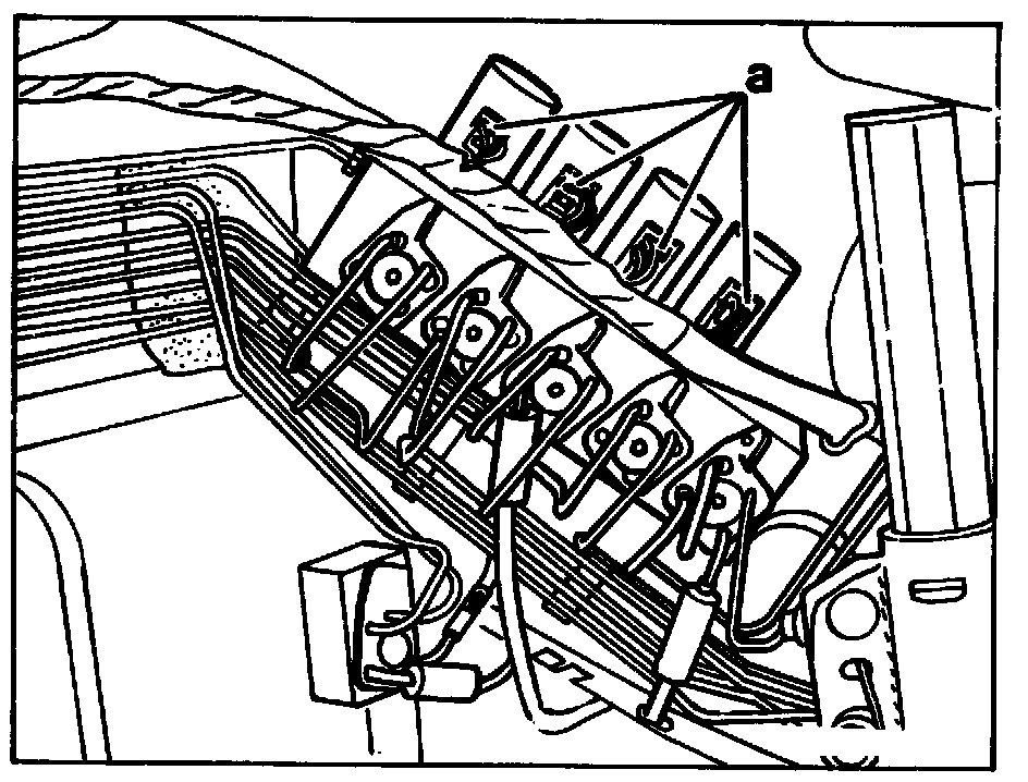 NOTE: To remove hydraulic lines press cable duct away slightly (spreading rivet removed).