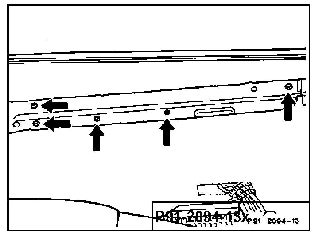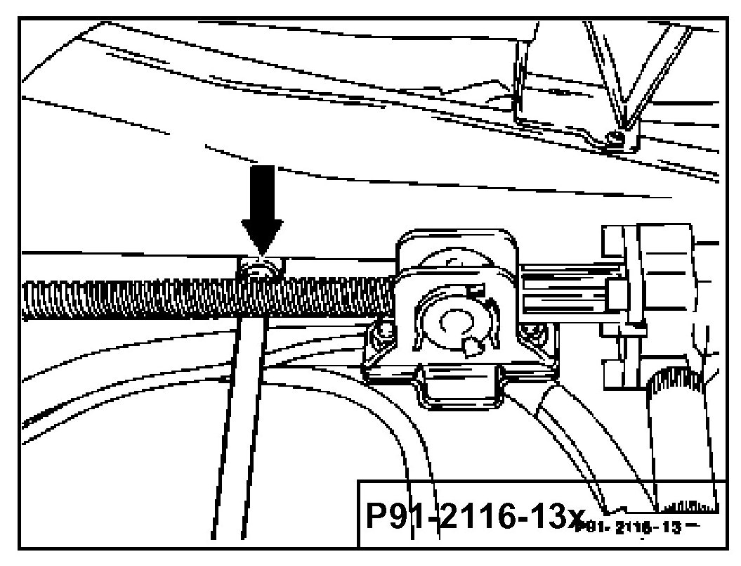 6 Unscrew screw (1 each) on left seat rail (arrow).