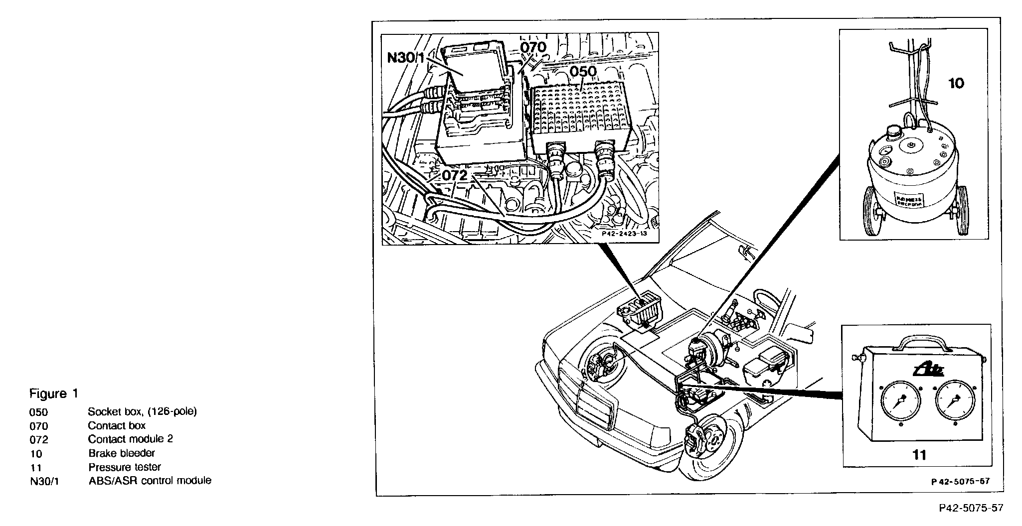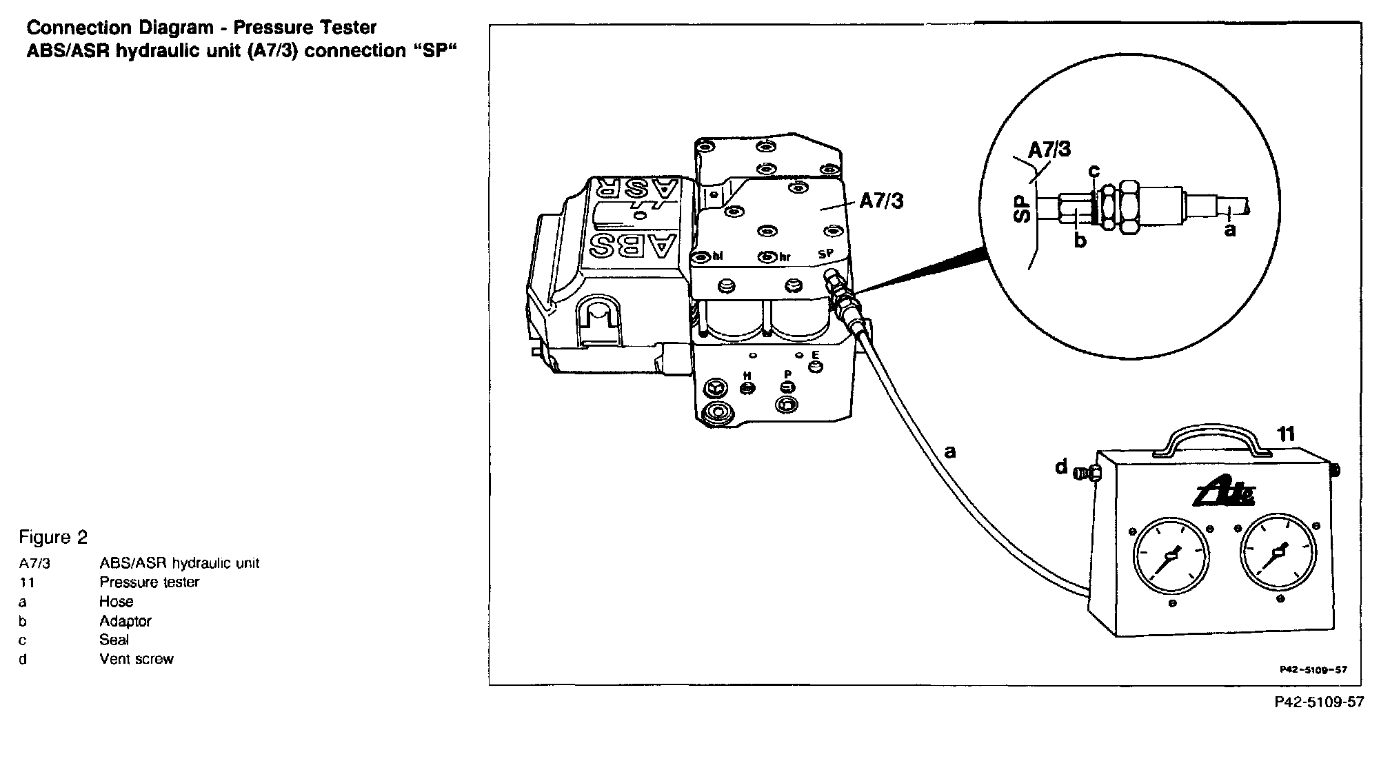 3. Connect pressure tester to "SP" on ABS/ASR hydraulic unit (A7/3).