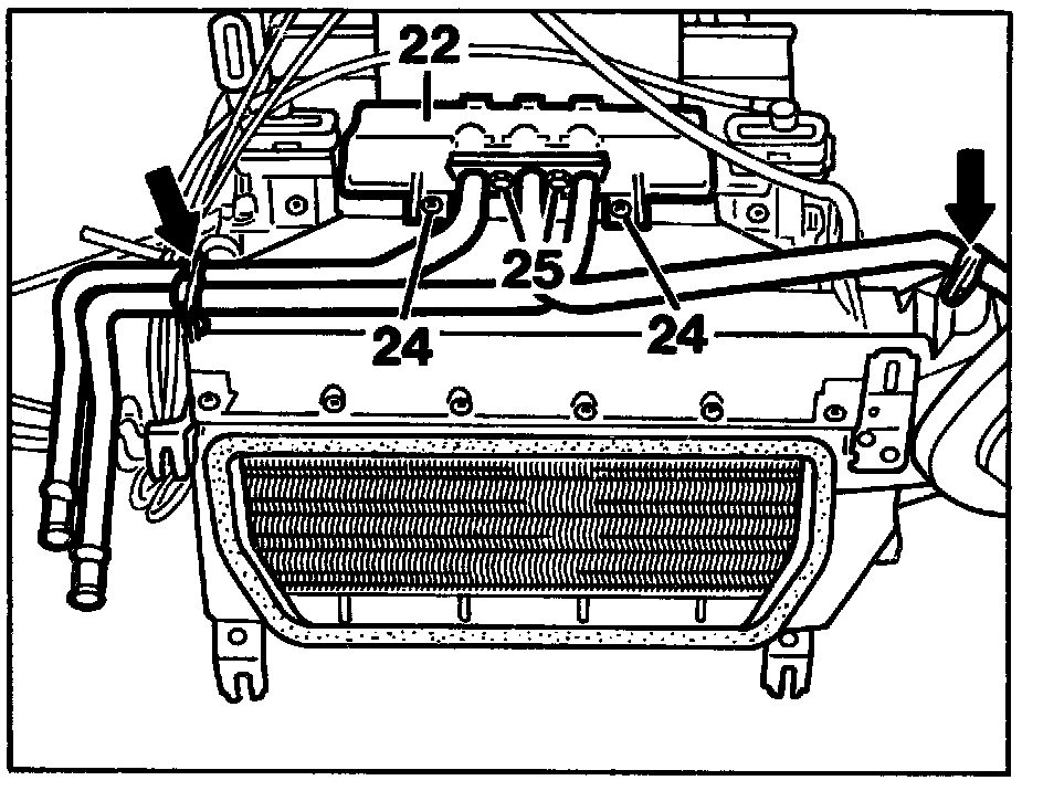 disconnect and fit to new heat exchanger with new O-rings. Remove screws (25) for this step.