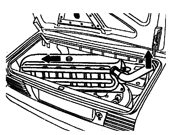 6 Remove fuel tank (75). If necessary lever out from the opening using plastic wedges (arrow) or similar. Pull fuel tank completely back to the left and take out at filler neck.