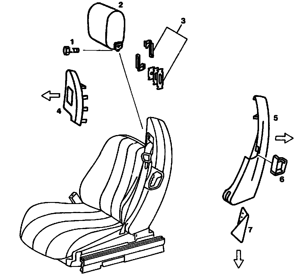 disassemble (2 catch hooks) and remove individual parts on head restraint.