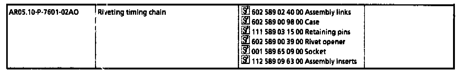 2 Screw thrust spindle (02) 602 589 05 63 00 together with thrust pin (02a) 602 589 05 63 01 into the chain separation tool (03) 602 589 02 33 00.