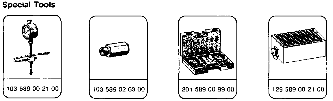 NOTE: All or some of the special tools shown in the image are required to perform the testing procedures. If Mercedes special tools are not available, select tools may be substituted with an aftermarket equivalent.