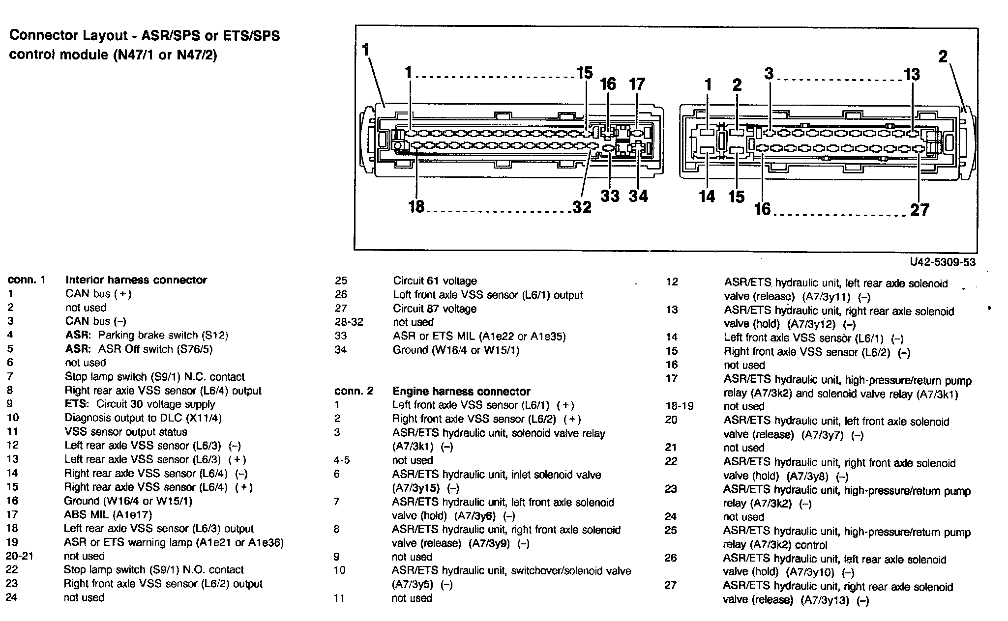 ��$Connector Layout - ASR/SPS Or ETS/SPS Control Module (N47/1orN47/2):