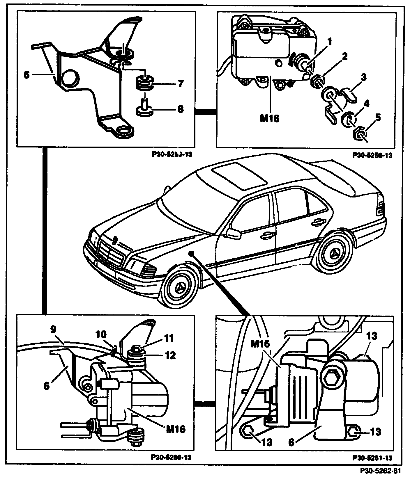 Remove from bracket (6), install. Check condition of rubber grommets, if necessary replace.