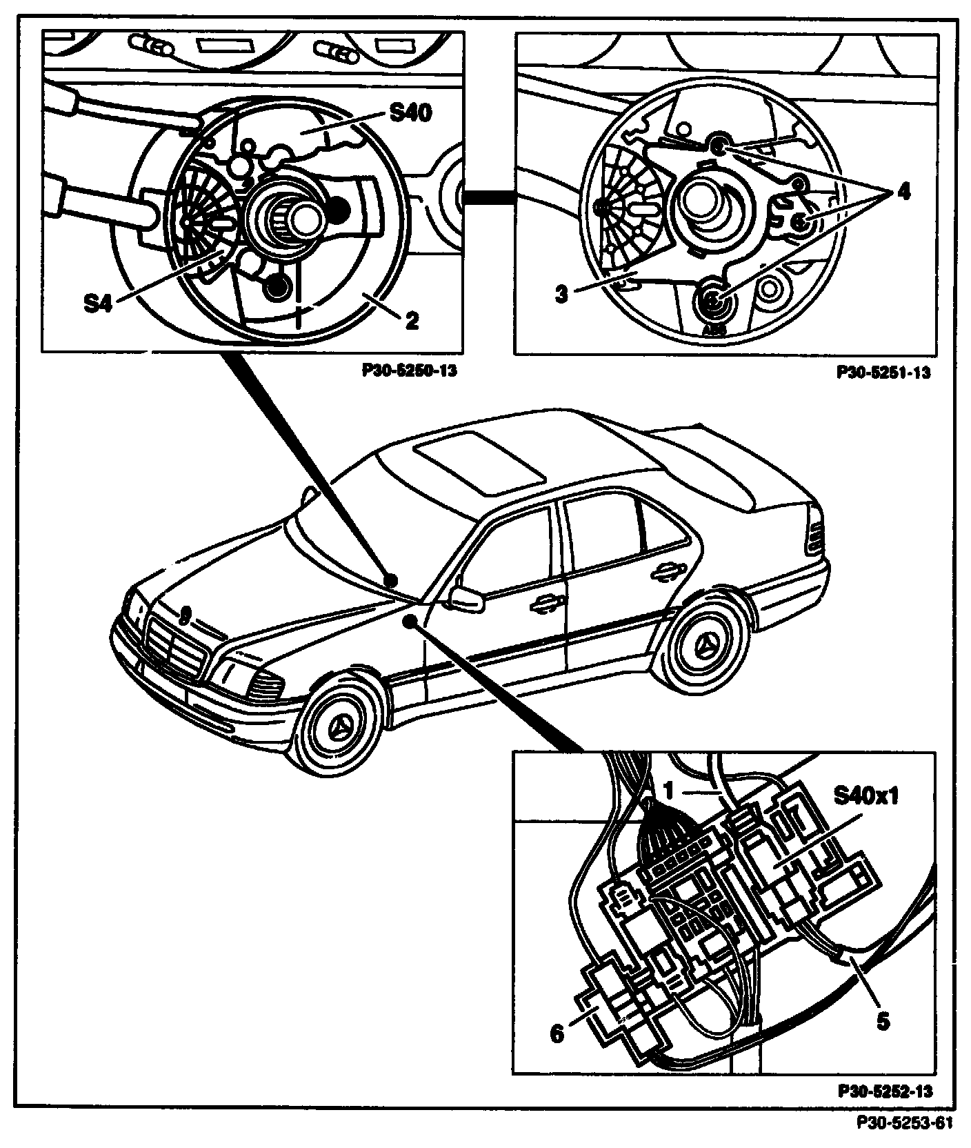 Connector, cruise control (CC) pushbutton switch (S40x1) from multipoint connector (6), below dashboard