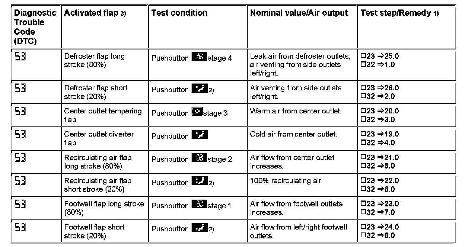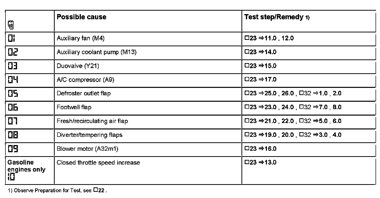 2. The components and functions described in the table below can be activated via the Hand-Held Tester (HHT). The data and notes for the individual test steps are to be taken from the display in the window of the HHT. HHT.