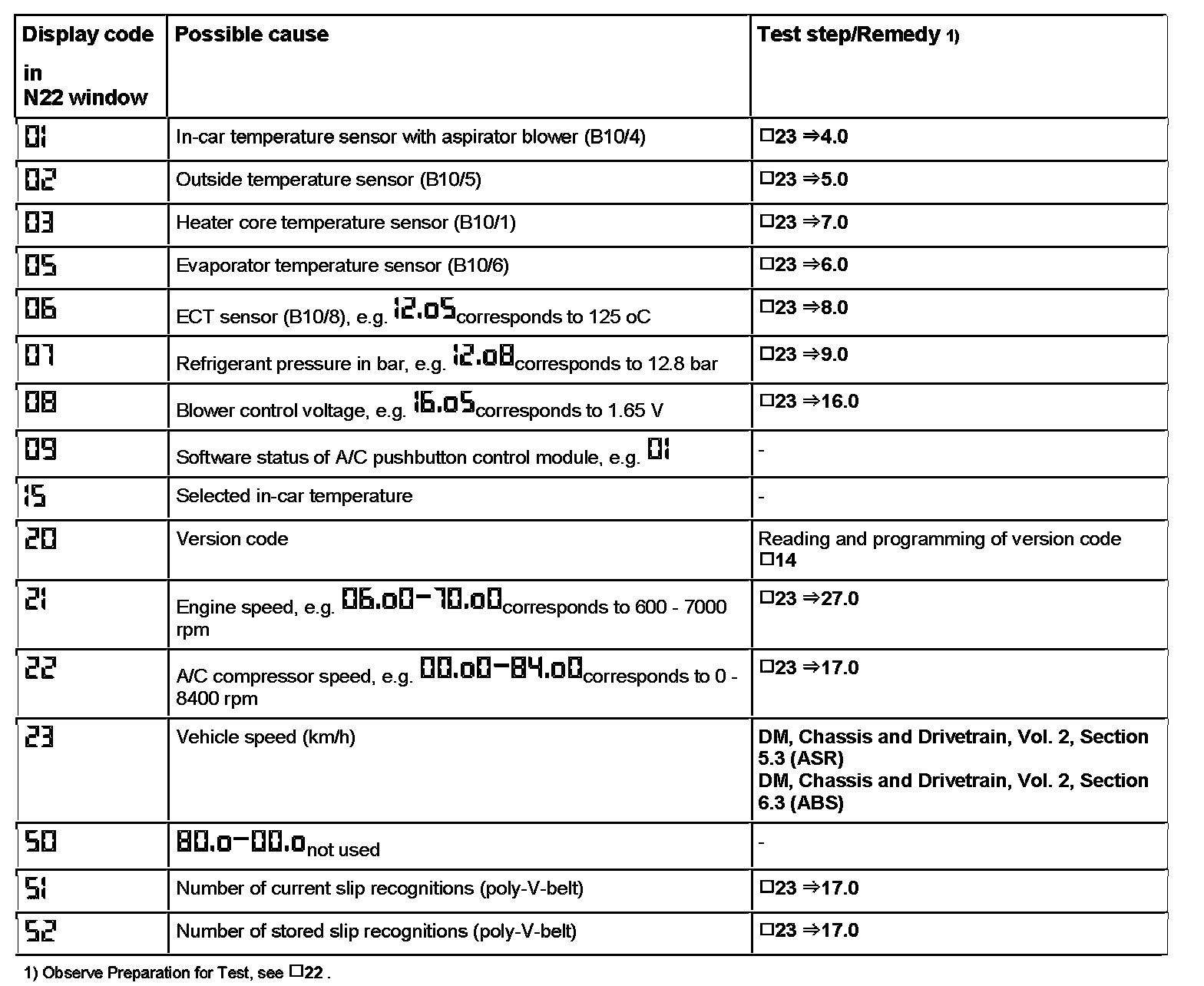 Reading Actual Values (via A/C Pushbutton Control Module [N22])