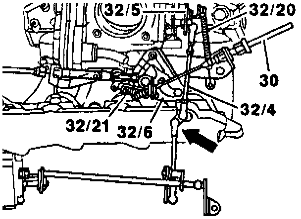 Previous adjustment procedures for accelerator control are still valid except for the connecting rod (32/4, Figure 3 [refer to SMS, Engine 111, Combustion, Job No. 30-1010]).