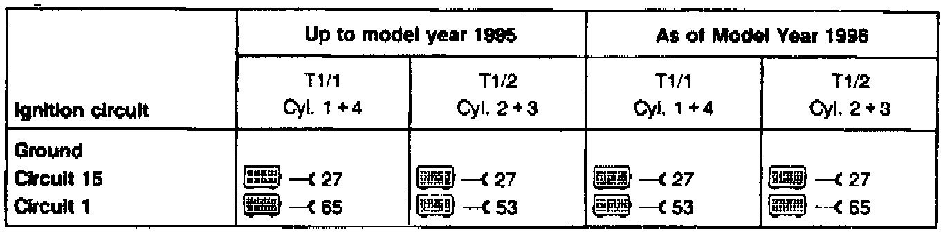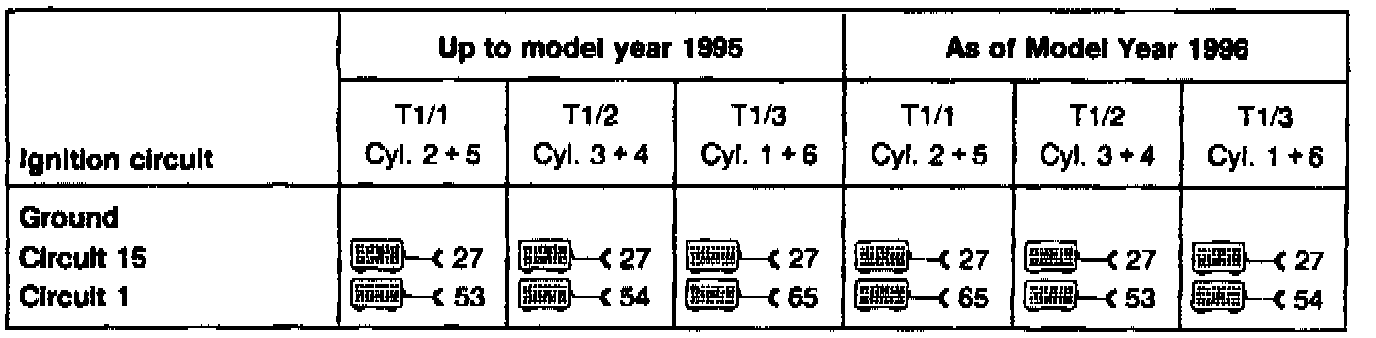 ^ Bear DACE and Sun MCM 211O/MEA 1500 (without the use of test adapters) The ignition system used in the HFM-SFI system can be checked by connecting the Mercedes-Benz socket box to the engine HFM-SFI engine control module and then connecting the universal engine analyzer leads to the socket box.