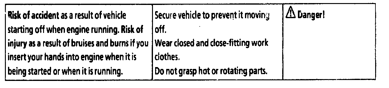 - As a general rule, carry out work on the running engine only if this is absolutely essential.