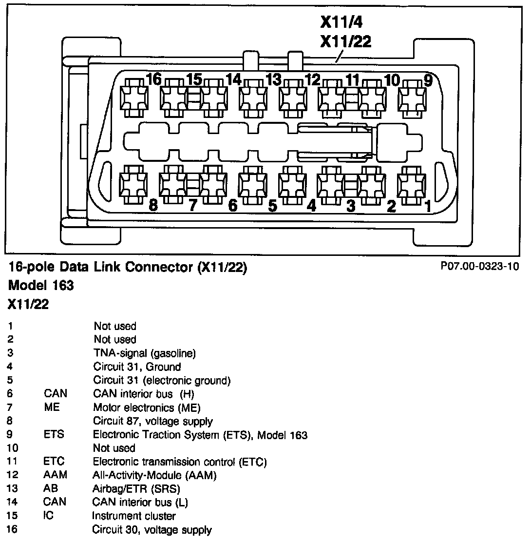 16-pole Data Link Connector (X11/22) (Model 163):