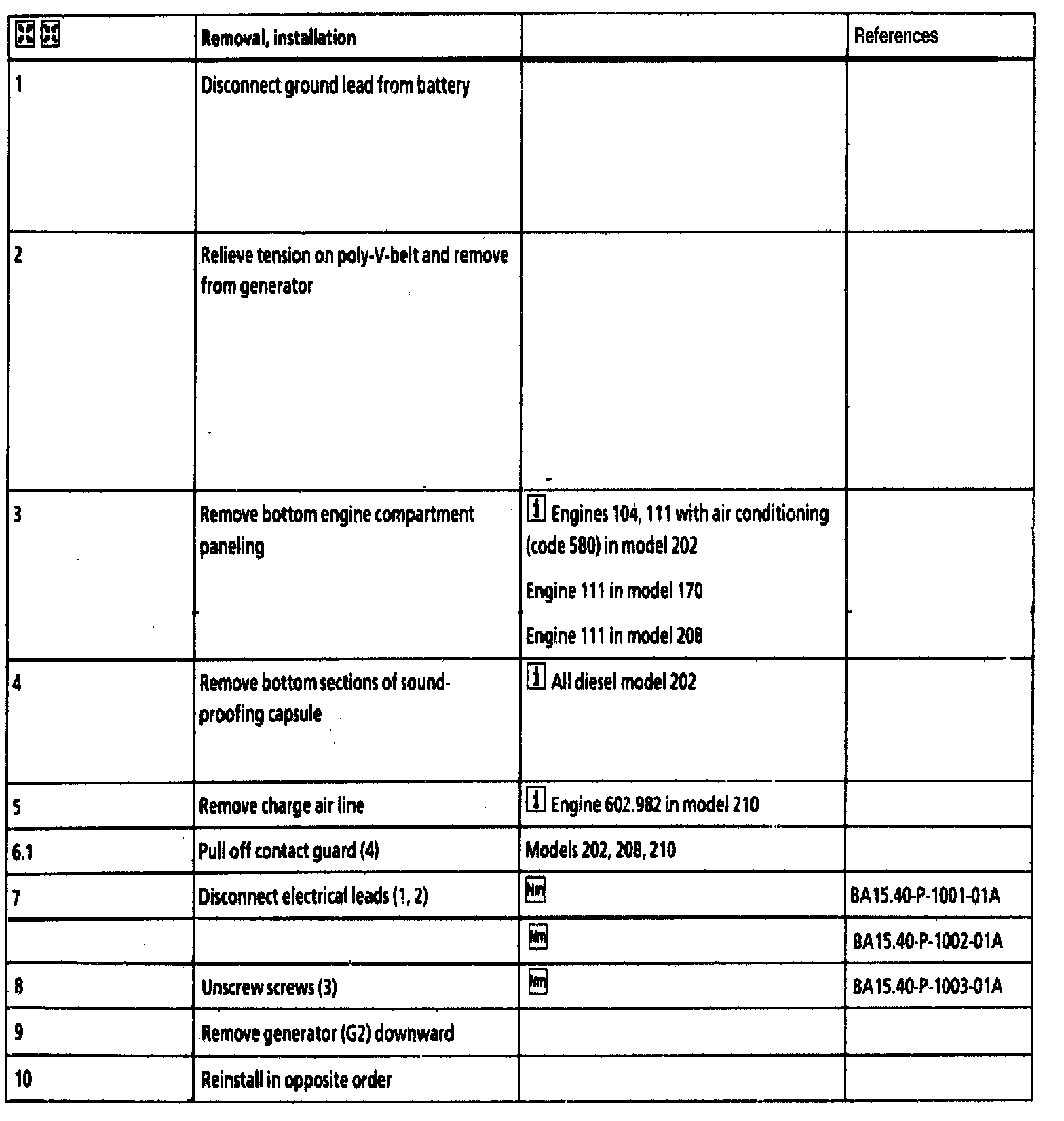 Removal/Installation, Steps 1 - 10: