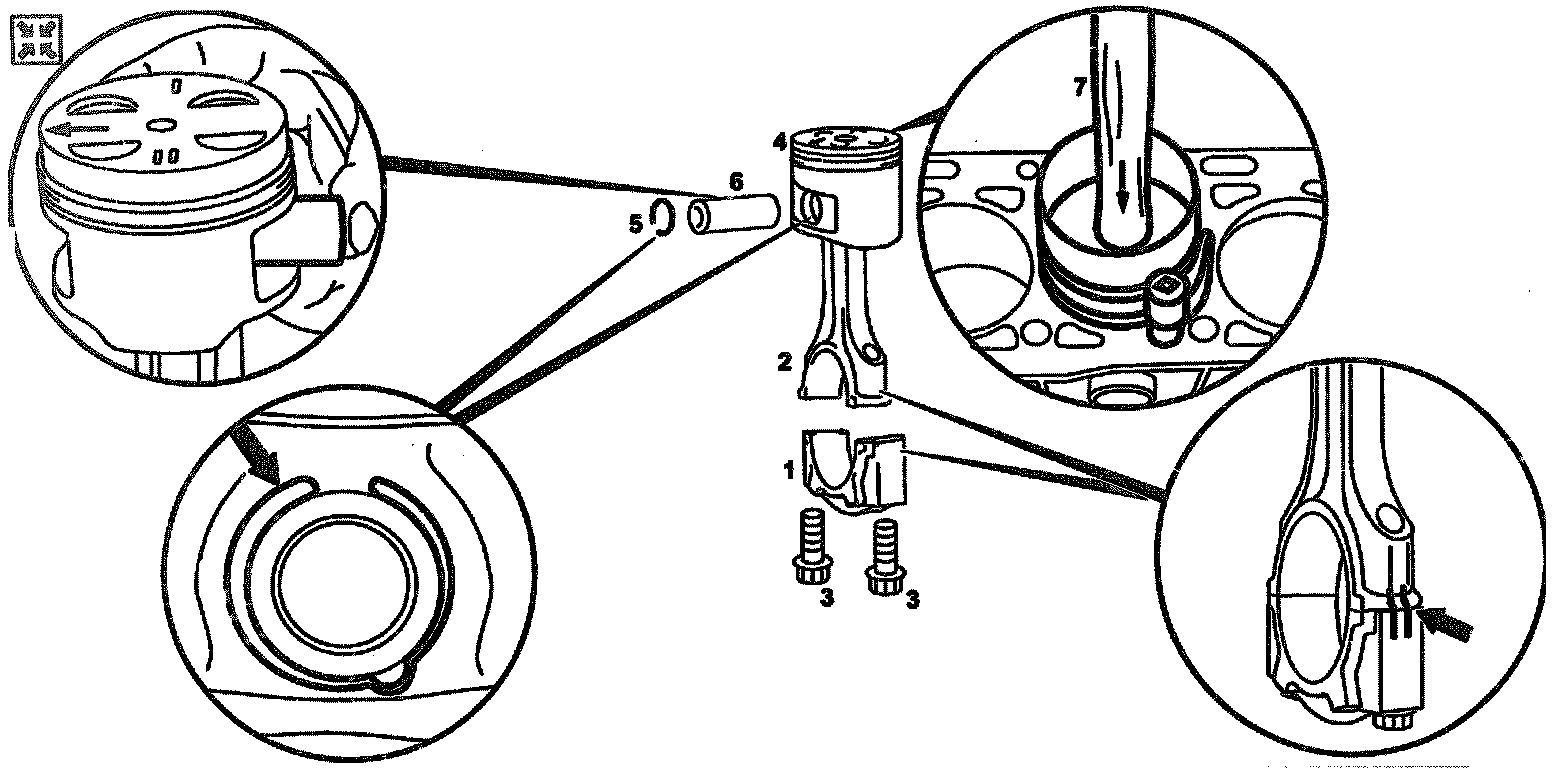 6. Lift conrod (2) up and out together with piston (4)