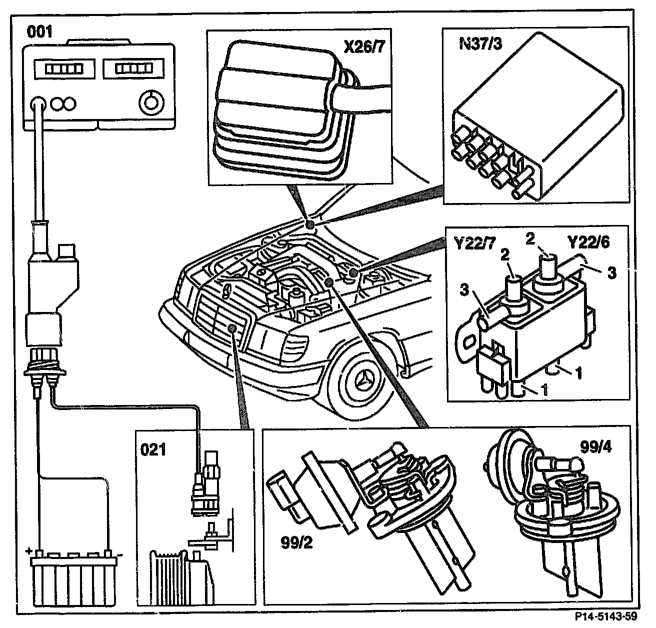 Connect digital tester (001) and pulse generator (021).
