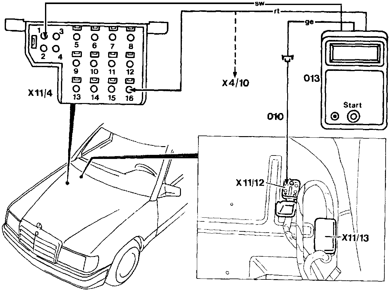 To avoid need for extension cable (010), connect black lead of impulse counter scan tool to good ground and red lead to X4/1O inside vehicle interior.