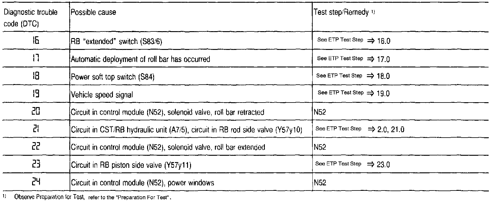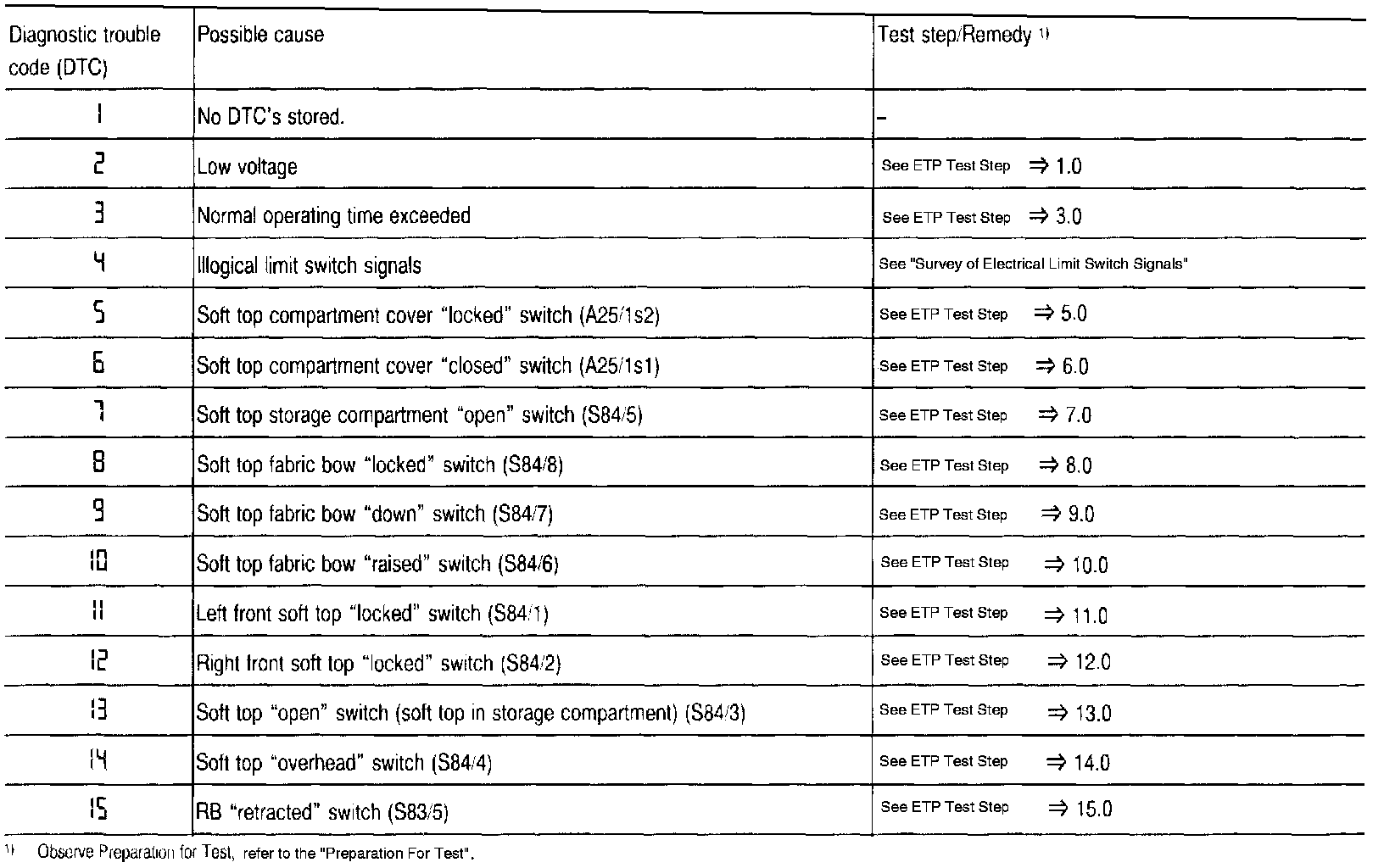 Limit switch diagnostic trouble codes (DTC's) are only stored when the soft top stops moving during soft top operation and the switch is held depressed until the indicator lamp begins blinking The exceptions are the switches for roll bar extended and roll bar retracted where the indicator lamp in the roll bar switch lights. DIC's 5 16 are considered limit switch DTC's, which do not necessarily mean the respective switch is defective, but rather should be interpreted as an indication of which limit switch signals are absent and are needed for the sequence to continue.