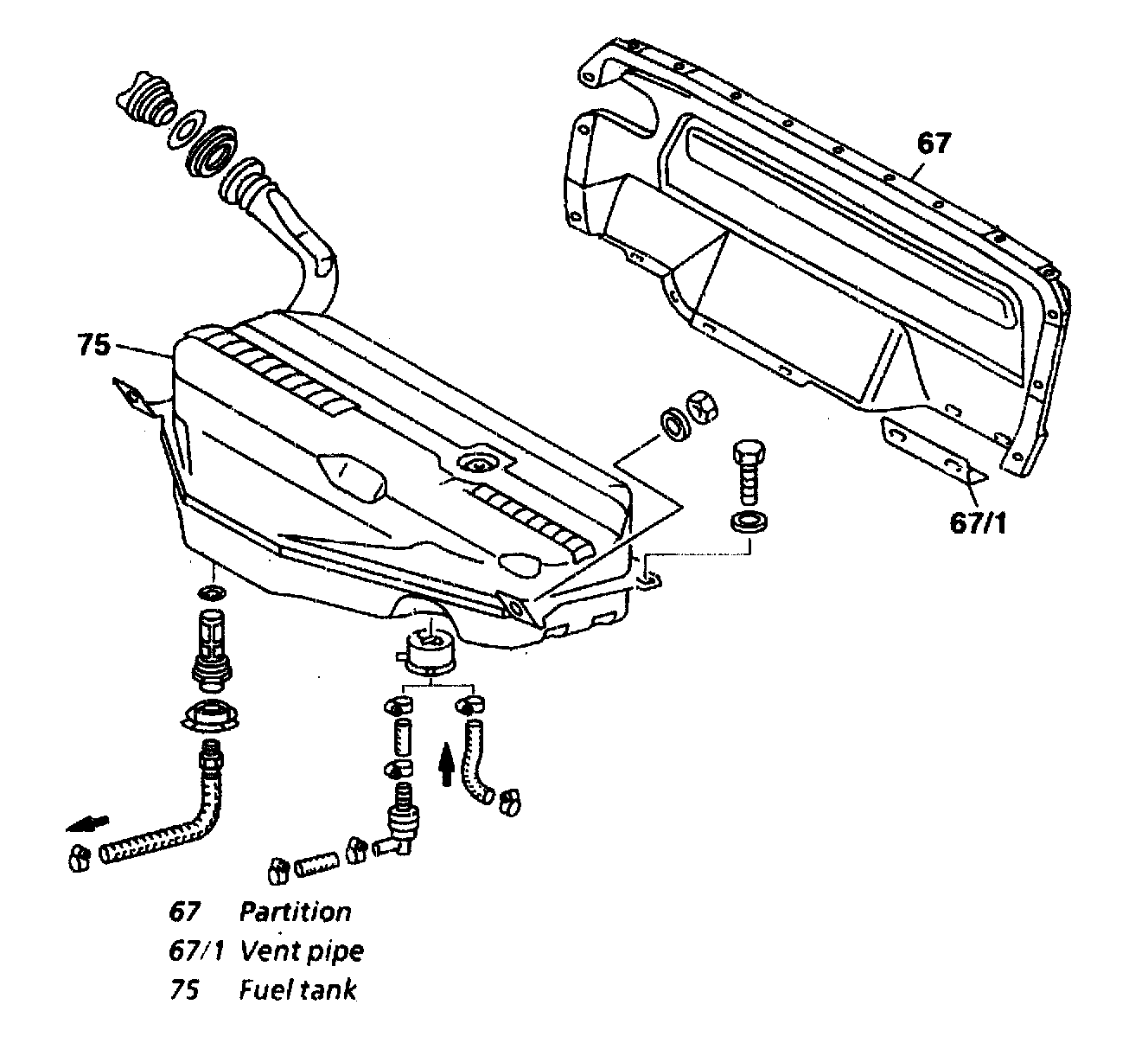 6 Remove partition (67) with angle bracket (67/1).