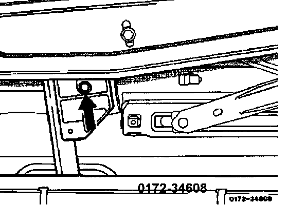 4. Unscrew nut on window lifting rail at front and disconnect window lift arm.