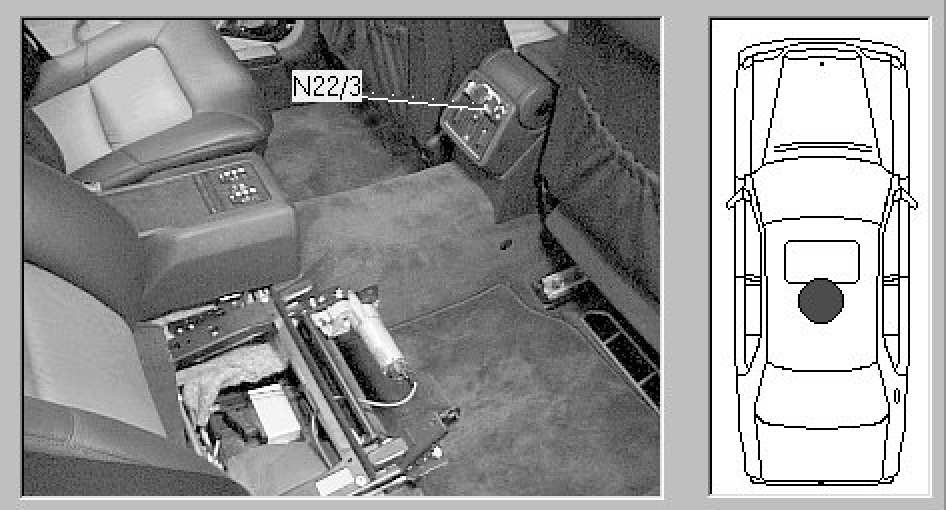 Passenger compartment, at rear of front center console.